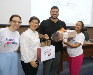As organizadoras do evento Natália Sirobaba (Sebrae), Chef Thais Okamoto, Chef Raul Lemos e Mariana Flores (Sinhores) no IV Food Vale