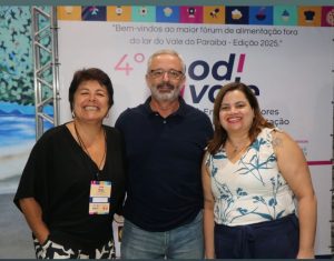 Carmola Cândido (Cozinha da Mantiqueira), Antônio Ferreira Júnior (presidente Sinhores) e Aline Arantes (secretaria de turismo de São José dos Campos) no IV Food Vale