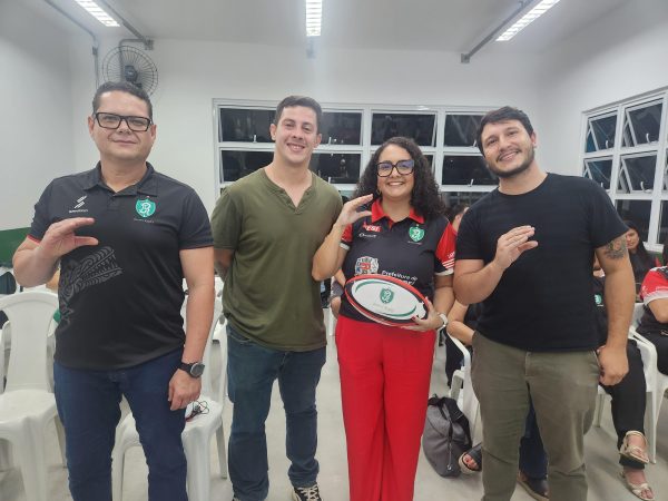 A diretoria eleita para a próxima gestão do Jacareí Rugby: (Da esquerda para a direita) Rogério Cunha, Luiz Gustavo Andreoti, Jessica Bernardino, Wendell Ferraz...