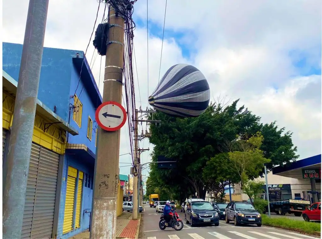 Segundo relatos, o balão acabou enroscado na fiação elétrica da via. Apesar do perigo, não houve princípio de incêndio, danos materiais ou feridos.