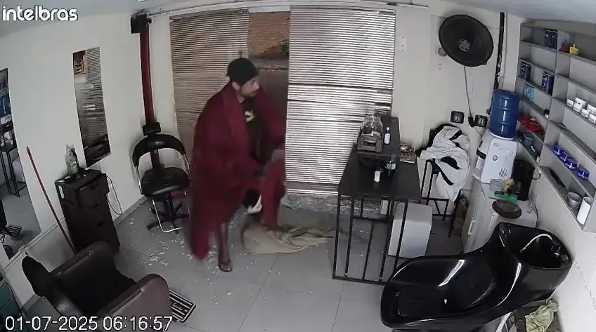 Um furto foi registrado em uma barbearia na manhã desta terça-feira (1º), por volta das 6h15, na rua Budapeste, no Jardim Augusta, em São José dos Campos. Imagens de câmeras de segurança mostram o momento em que um homem força a entrada e quebra a porta de vidro do estabelecimento. Após arrombar o local, ele acessa o interior da loja, revira gavetas e coloca diversos objetos em uma mochila.