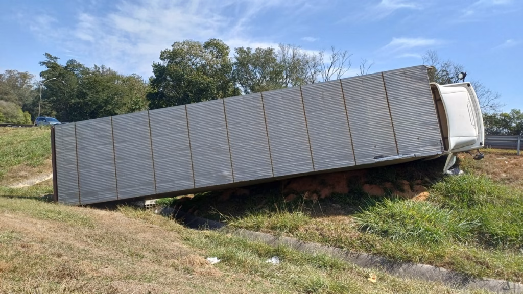 Um caminhão que transportava caixões tombou na manhã desta quinta-feira (21), na altura do km 160,7 da Rodovia Presidente Dutra, pista sentido Rio de Janeiro, em frente ao Atacadão, no município de Jacareí. O acidente ocorreu por volta das 10h50. Apesar do susto, não houve feridos.