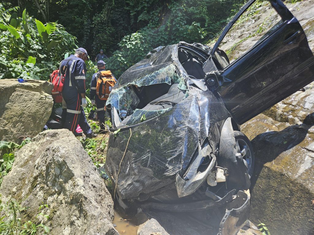 O Corpo de Bombeiros realizou o resgate de quatro pessoas que estavam em um veículo que despencou em uma ribanceira em Ilhabela.
