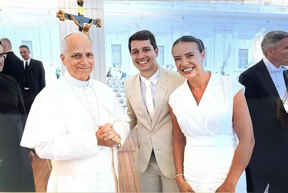 A fé católica tem um papel importante na vida da família da noiva. Em 2018, sua irmã participou da mesma cerimônia e recebeu a bênção de Papa Francisco. Agora, com Papa Leão XIV, o sonho da família se repetiu.