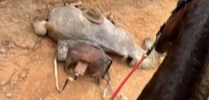 Ainda de acordo com o depoimento, o tutor acreditava que o cavalo já estava sem vida no instante em que realizou o golpe. A testemunha, bastante abalada, deixou o local e não acompanhou o desfecho da cena.