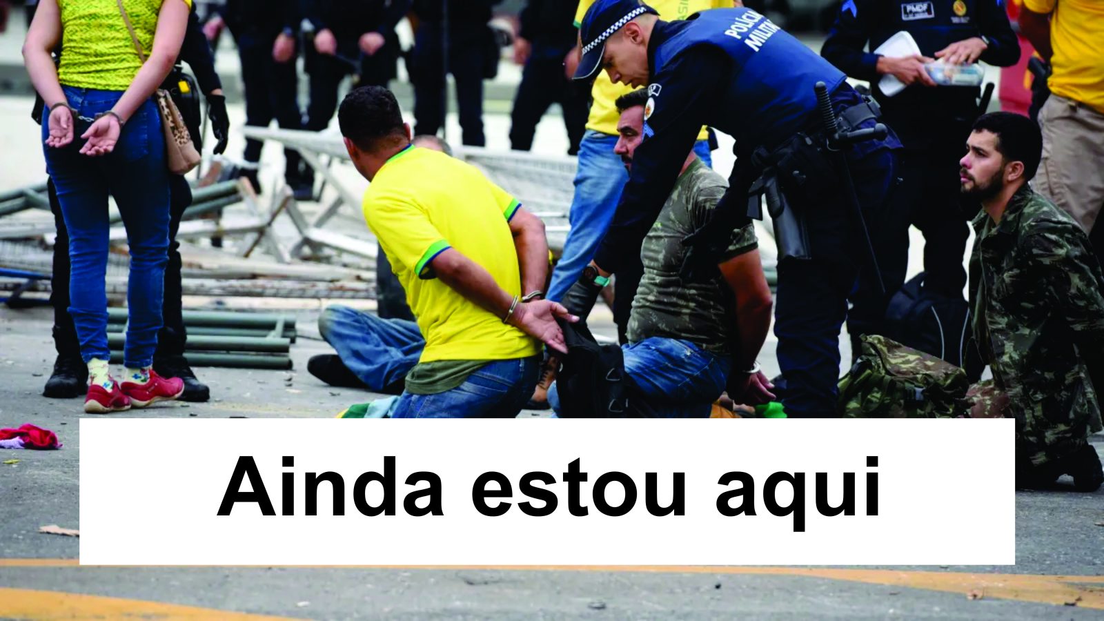 Eu sou a viúva de Clezao, preso injustamente e morto na Papuda. Eu ainda estou aqui. Eu sou Débora, cabeleireira e mãe de dois filhos, que escreveu “Perdeu, Mané” com batom em uma estátua e fui condenada a 17 anos de prisão. Eu ainda estou aqui.