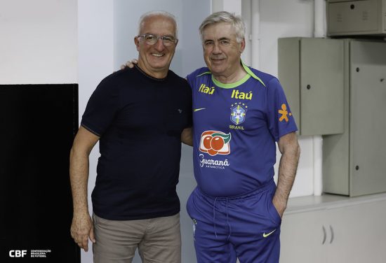 O ex-tecnico da Seleção Brasileira, Dorival Júnior, e o atual, Carlo Ancelotti, se encontraram na tarde deste sábado no Centro de Treinamento Joaquim Grava, casa do Corinthians, antes do primeiro treino com elenco completo para a partida da próxima terça-feira contra o Paraguai, às 21h30, na Neo Química Arena, pela 16ª rodada das Eliminatórias da América do Sul para a Copa do Mundo de 2026. Na quinta, só foram a campos os jogadores não utilizados no empate por 0 x 0 com o Equador, em Guayaquil. Quem entrou em campo ficou na academia do clube paulista.