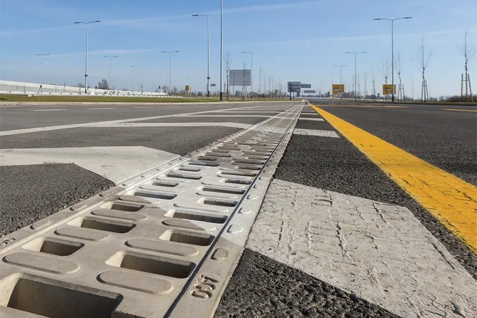 A vantagem do monoblock é maximizar a capacidade hidráulica, promovendo a auto limpeza do canal, uma vez que o corpo da peça possui seção transversal em formato de V. Além disso, a fabricação é de concreto polímero com alta resistência, anticorrosivo com grelhas antirruídos e antifurto.