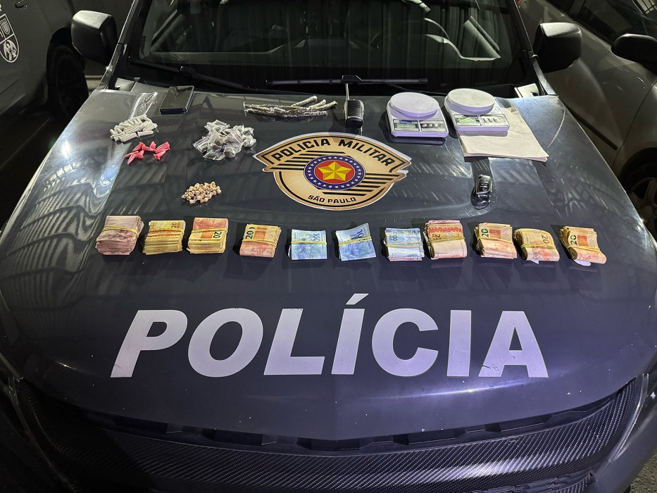 Com as informações repassadas, os policiais seguiram até uma residência na Vila Tesouro, onde localizaram mais itens relacionados ao tráfico. No imóvel, foram apreendidas 32 cápsulas de cocaína, 50 pedras de crack e 27 porções de maconha, além da quantia de R$ 11.209 em espécie.