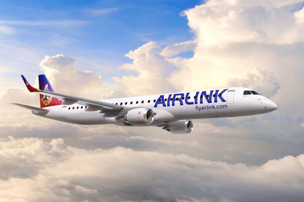 A Airlink é cliente da Embraer desde 2001 e opera voos para 47 destinos em 15 países da África Austral e Oriental, incluindo Madagascar e Ilha de Santa Helena. A companhia também faz fretamentos não comerciais para a Ilha de Ascensão, no Atlântico Sul.