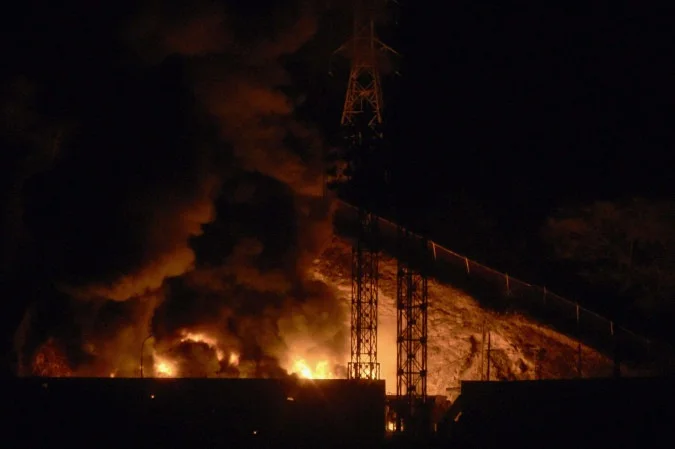 Foto de um incêndio no Forte Tiuna, o maior complexo militar da Venezuela, após uma série de explosões em Caracas em 3 de janeiro de 2026. Fortes explosões, acompanhadas por sons que se assemelham ao sobrevoo de aeronaves, foram ouvidas em Caracas por volta das 2h00 (06h00 GMT) do dia 3 de janeiro, informou um jornalista da AFP. As explosões ocorrem no momento em que o presidente dos EUA, Donald Trump, que mobilizou uma força-tarefa naval para o Caribe, levantou a possibilidade de ataques terrestres contra a Venezuela. (Foto de Luis JAIMES / AFP) – (crédito: AFP)