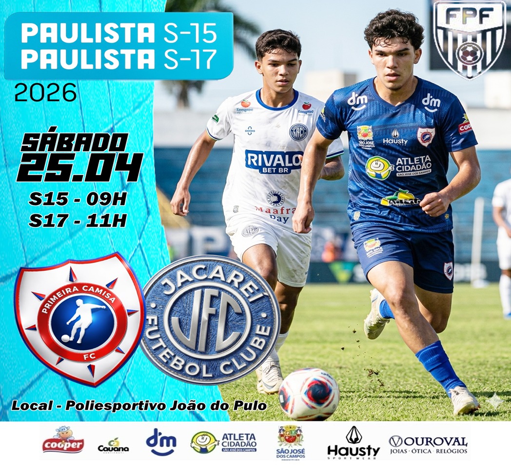 Os primeiros compromissos das equipes Sub 15 e Sub 17 deste Paulista da categoria, marca o encontro regional entre FC Primeira Camisa/Atleta Cidadão e Jacareí FC no campo do Poliesportivo João do Pulo em São José dos Campos. Os meninos do Sub 15 se enfrentam as 09 horas e pela categoria Sub 17 o jogo está marcado para as 11 horas. As partidas terão portões abertos.