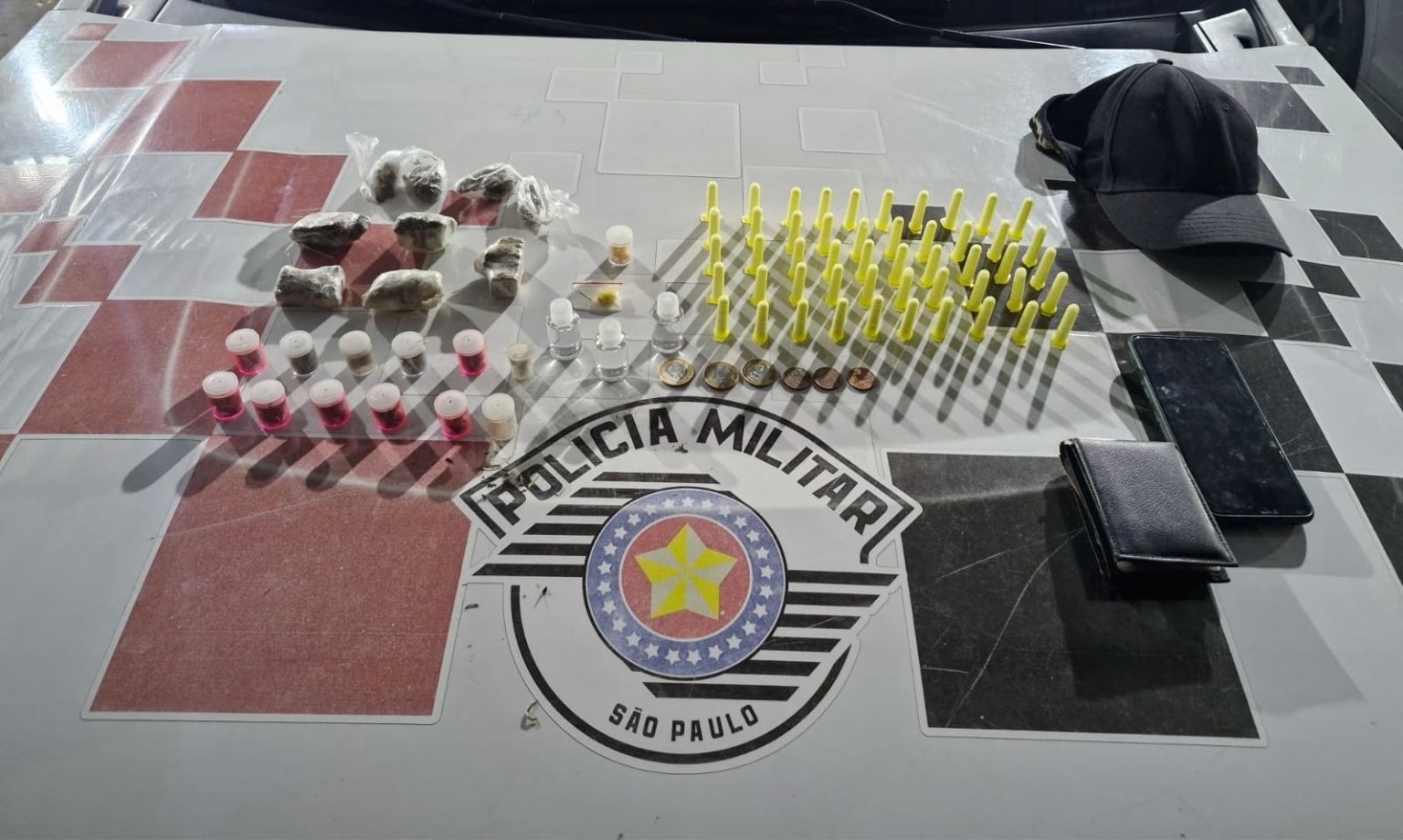 Durante a vistoria, os policiais encontraram uma porção de crack com o motorista e, dentro do automóvel, ferramentas utilizadas em furtos, além de 20 porções de maconha, 50 de cocaína, três frascos de lança-perfume, um comprimido de ecstasy e R$ 3,15 em dinheiro.