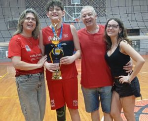 Familiares prestigiaram os atletas incentivando-os para essa conquista. Murilo, um dos destaques da Copa, ao lado dos pais e irmã.