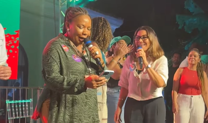 A esposa do presidente Luiz Inácio Lula da Silva (PT) dançava ao lado da ministra, até que em determinado momento, recebeu um microfone para formar um dueto com Menezes.
