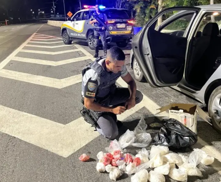 Uma mulher foi presa em flagrante por tráfico de drogas na noite da última quarta-feira (6), após ser flagrada transportando uma grande quantidade de entorpecentes em um carro de aplicativo na Rodovia dos Tamoios, em Caraguatatuba, litoral norte de São Paulo.