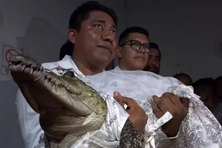 O prefeito da cidade de San Pedro Huamelula, no estado de Oaxaca, no México, participou na última segunda-feira (28), de um casamento simbólico com um jacaré fêmea. A cerimônia faz parte de uma tradição indígena com mais de dois séculos de história, celebrando a união espiritual com uma divindade representada pelo animal.