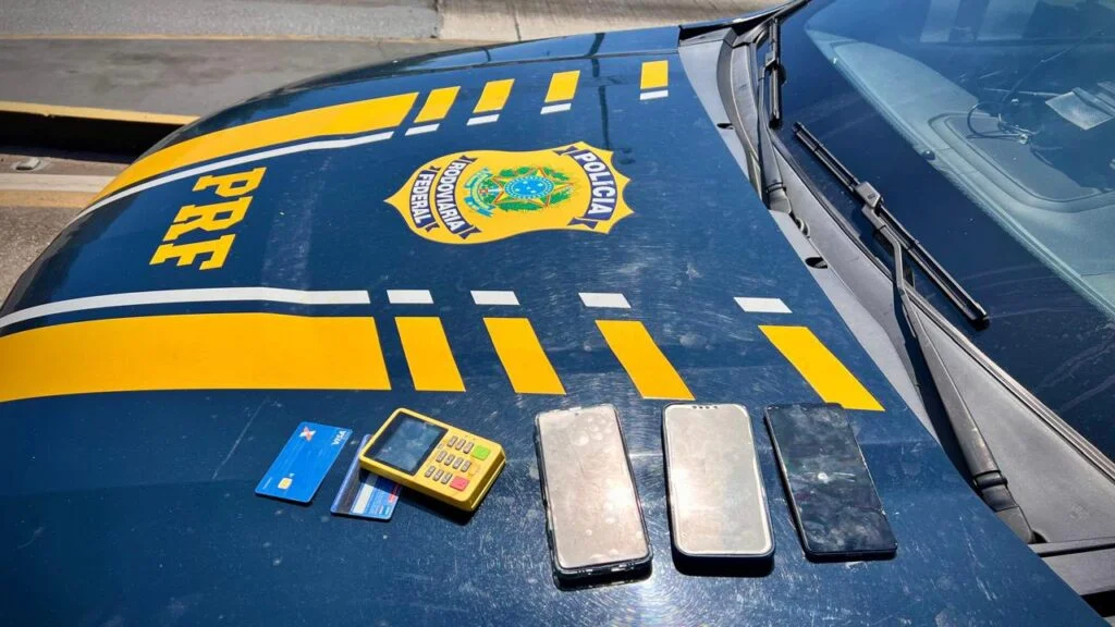 Segundo a PRF, agentes do Grupo de Patrulhamento Tático da Delegacia de São José dos Campos fiscalizaram um Hyundai HB20 prata e desconfiaram das versões contraditórias apresentadas pelo motorista, de 36 anos, e pelos passageiros, de 39 e 41 anos. Na vistoria, foram encontrados uma máquina de cartão e dois cartões bancários de origem suspeita.