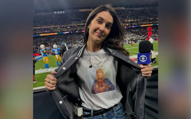 A jornalista Mariana Spinelli, do Globo Esporte, foi criticada após aparecer em uma postagem usando uma camiseta com a imagem de Nossa Senhora, mas com o rosto da cantora Taylor Swift. O episódio ocorreu durante a abertura da NFL no Brasil, em São Paulo.
