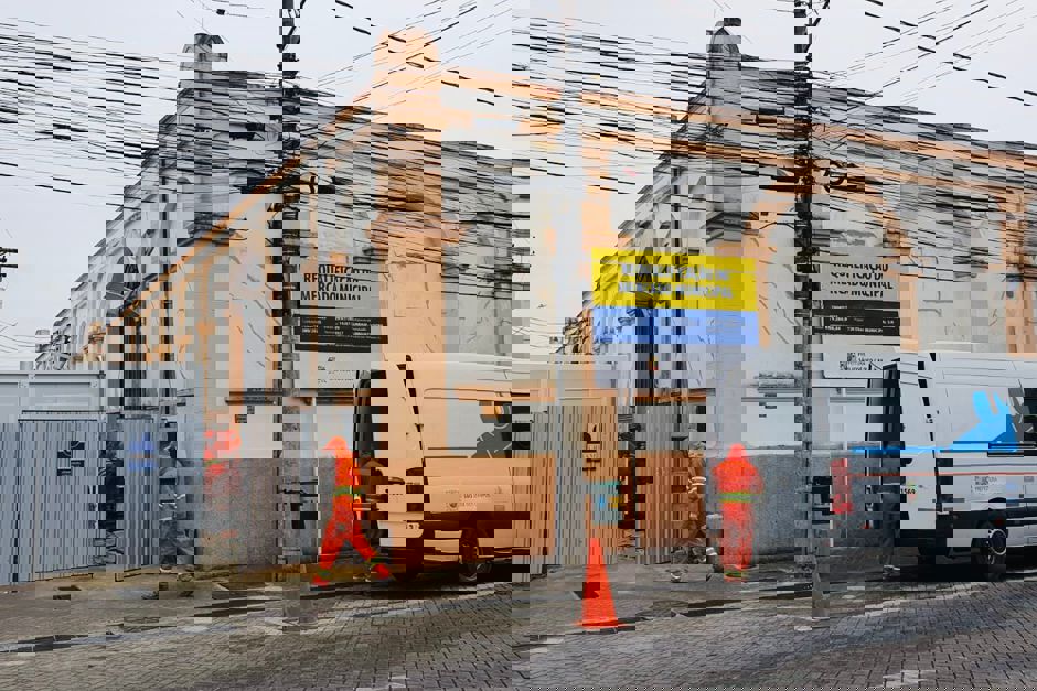 No momento, a empresa está realizando os serviços de adequação das instalações elétricas e hidrossanitárias dos módulos pré-fabricados instalados na Rua 7 de Setembro, os quais abrigarão temporariamente os comerciantes durante o período das obras. Além disso, as equipes estão fazendo a substituição da rede de esgoto externa ao prédio, que tem mais de cem anos de existência. A escavação precisa ser manual devido ao espaço estreito para a ação.