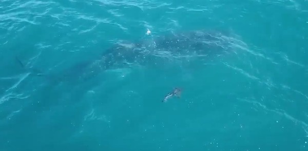 O tubarão-baleia, que pode chegar a 12 metros de comprimento, alimenta-se de plâncton e pequenos organismos marinhos. Apesar de seu tamanho impressionante, é uma espécie dócil e inofensiva aos seres humanos. Sua aparição reforça a riqueza da biodiversidade da região e a importância da preservação dos oceanos.