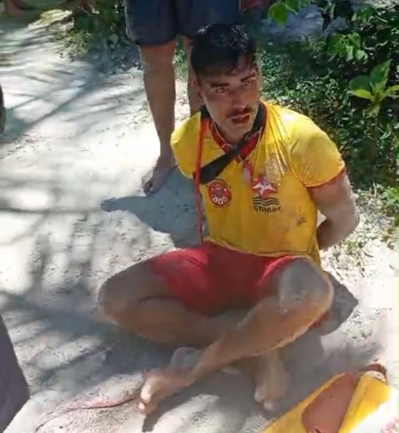 O  guarda-vidas alegou que foi ofendido verbalmente pela mulher e seus familiares, inclusive com xingamentos de cunho racial, o que culminou em agressões físicas. E após a intervenção policial e já algemado,  ele foi novamente agredido.