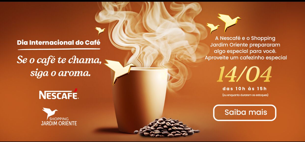 Você ama tomar café? E se for de graça, melhor ainda? Pois bem, no Dia Internacional do Café, em 14 de abril, o Shopping Jardim Oriente em parceria com a cafeteria Nescafé, irá oferecer aos seus clientes uma dose de cafezinho. A distribuição será na próxima segunda- feira (14), das 10h às 15h ou enquanto durar o estoque. A ação será próxima a portaria do hipermercado Shibata, no local será colocado um cenário instagramável para fotos.